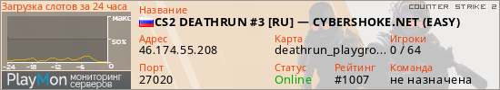 ID: 73285Ссылка: https://playmon.ru/server/46.174.55.208:27020