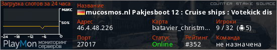 mucosmos.nl Pakjesboot 12 : Cruise ships : Votekick disabled представлен в виде сервера ксс. Из всех имеющихся на сайте модификаций игровых серверов, вам может понравиться Surf серверы css. А для быстрой навигации по всем меткам - используйте главную страницу игры Counter Strike Source.