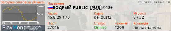 ID: 12906Ссылка: https://playmon.ru/server/46.8.29.170:27016