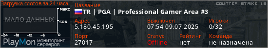 TR | PGA | Professional Gamer Area #3 представлен в виде сервера кс 1.6. Из всех имеющихся на сайте модификаций игровых серверов, вам может понравиться DeathMatch серверы cs. А для быстрой навигации по всем меткам - используйте главную страницу игры Counter Strike 1.6.