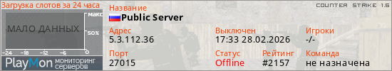 ID: 74029Ссылка: https://playmon.ru/server/5.3.112.36:27015