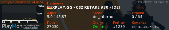 XPLAY.GG • CS2 RETAKE #30 • [DE] представлен в виде сервера кс 2. Из всех имеющихся на сайте модификаций игровых серверов, наша система поставила метку Retake сервера cs2. В нашем мониторинге игровых серверов вы так же можете найти быструю навигацию по всем меткам - используйте главную страницу игры Counter Strike 2.