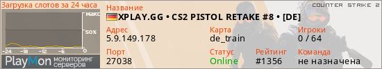 XPLAY.GG • CS2 PISTOL RETAKE #8 • [DE] представлен в виде сервера кс 2. Из всех имеющихся на сайте модификаций игровых серверов, наша система поставила метку Retake сервера cs2. В нашем мониторинге игровых серверов вы так же можете найти где поиграть на Pistol сервере кс 2.