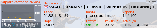 SMALL | UKRAINE | CLASSIC | WIPE 05.03 | ПАЛЯНИЦЯ | UA представлен в виде сервера раст. Из всех имеющихся на сайте модификаций игровых серверов, вам может понравиться Kits серверы rust. А для быстрой навигации по всем меткам - используйте главную страницу игры Rust.