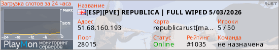 ID: 82279Ссылка: https://playmon.ru/server/51.68.160.193:28015