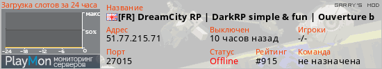 ID: 77795Ссылка: https://playmon.ru/server/51.77.215.71:27015