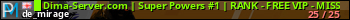 █ Dima-Server.com | Super Powers #1 | RANK - FREE VIP - MISSI представлен в виде
