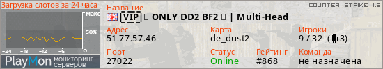 |͇̿V͇̿I͇̿P͇̿|【 ONLY DD2 BF2 】 | Multi-Head представлен в виде сервера кс 1.6. Из всех имеющихся на сайте модификаций игровых серверов, вам может понравиться Knife серверы cs. А для быстрой навигации по всем меткам - используйте главную страницу игры Counter Strike 1.6.