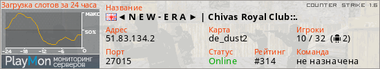 ◄ N E W - E R А ► | Chivas Royal Club::. представлен в виде сервера кс 1.6. Из всех имеющихся на сайте модификаций игровых серверов, вам может понравиться Hide'n'Seek серверы cs. А для быстрой навигации по всем меткам - используйте главную страницу игры Counter Strike 1.6.