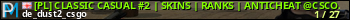 [PL] CLASSIC CASUAL #2 | SKINS | RANKS | ANTICHEAT @CSCO.pl представлен в виде сервера ксс. Из всех имеющихся на сайте модификаций игровых серверов, наша система поставила метку Classic сервера css. В нашем мониторинге игровых серверов вы так же можете найти быструю навигацию по всем меткам - используйте главную страницу игры Counter Strike Source.