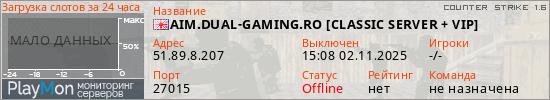AIM.DUAL-GAMING.RO [CLASSIC SERVER + VIP] представлен в виде сервера кс 1.6. Из всех имеющихся на сайте модификаций игровых серверов, наша система поставила метку Classic сервера cs. В нашем мониторинге игровых серверов вы так же можете найти где поиграть на AIM сервере кс 1.6.