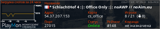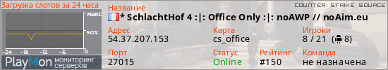 * SchlachtHof 4 :|: Office Only :|: noAWP // noAim.eu представлен в виде сервера ксс. Из всех имеющихся на сайте модификаций игровых серверов, наша система поставила метку AWP сервера css. В нашем мониторинге игровых серверов вы так же можете найти быструю навигацию по всем меткам - используйте главную страницу игры Counter Strike Source.