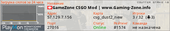 GameZone CSGO Mod | www.Gaming-Zone.info представлен в виде сервера кс 1.6. Из всех имеющихся на сайте модификаций игровых серверов, вам может понравиться Knife серверы cs. А для быстрой навигации по всем меткам - используйте главную страницу игры Counter Strike 1.6.