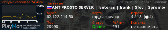 ANT PROSTO SERVER | !veteran | !rank | $fov | $promod | $fps | antcod4.ru