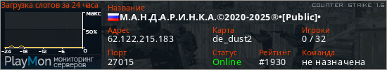 ID: 54280Ссылка: https://playmon.ru/server/62.122.215.183:27015