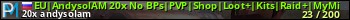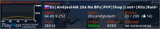 EU|AndysolAM 20x No BPs|PVP|Shop|Loot+|Kits|Raid+|MyMini|Skinbo представлен в виде