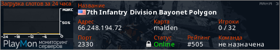 7th Infantry Division Bayonet Polygon представлен в виде сервера арма 3. Из всех имеющихся на сайте модификаций игровых серверов, вам может понравиться ACE 3 серверы arma3. А для быстрой навигации по всем меткам - используйте главную страницу игры ARMA 3.