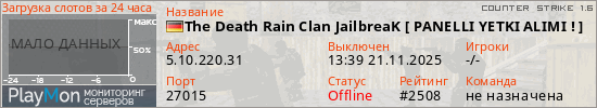 ID: 70690Ссылка: https://playmon.ru/server/5.10.220.31:27015
