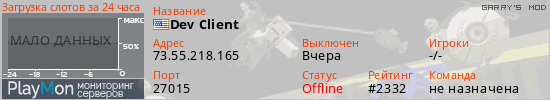ID: 74724Ссылка: https://playmon.ru/server/73.55.218.165:27015