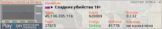 ID: 73599Ссылка: https://playmon.ru/server/45.136.205.116:27015