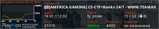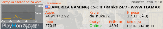 [AMERICA GAMING] CS-CTF+Ranks 24/7 - WWW.TEAMAXG.COM представлен в виде сервера кс 1.6. Из всех имеющихся на сайте модификаций игровых серверов, вам может понравиться DeathMatch серверы cs. А для быстрой навигации по всем меткам - используйте главную страницу игры Counter Strike 1.6.