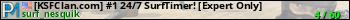 [KSFClan.com] #1 24/7 SurfTimer! [Expert Only] представлен в виде сервера ксс. Из всех имеющихся на сайте модификаций игровых серверов, наша система поставила метку Surf сервера css. В нашем мониторинге игровых серверов вы так же можете найти быструю навигацию по всем меткам - используйте главную страницу игры Counter Strike Source.