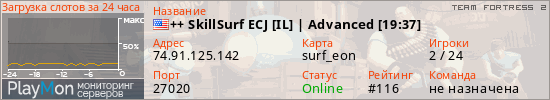 ++ SkillSurf ECJ [IL] | Advanced [19:48] представлен в виде сервера тф2. Из всех имеющихся на сайте модификаций игровых серверов, вам может понравиться DeathRun серверы tf2. А для быстрой навигации по всем меткам - используйте главную страницу игры Team Fortress 2.