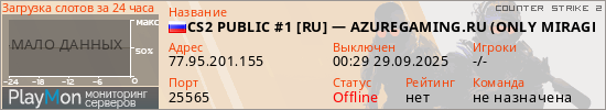 CS2 PUBLIC #1 [RU] — AZUREGAMING.RU (ONLY MIRAGE, FREEVIP, BH представлен в виде сервера кс 2. Из всех имеющихся на сайте модификаций игровых серверов, вам может понравиться DeathMatch серверы cs2. А для быстрой навигации по всем меткам - используйте главную страницу игры Counter Strike 2.