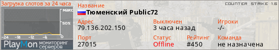ID: 83499Ссылка: https://playmon.ru/server/79.136.202.150:27015