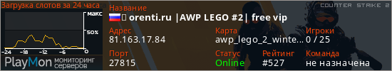 ★ orenti.ru |AWP LEGO #2| free vip представлен в виде сервера кс 2. Из всех имеющихся на сайте модификаций игровых серверов, наша система поставила метку AWP сервера cs2. В нашем мониторинге игровых серверов вы так же можете найти быструю навигацию по всем меткам - используйте главную страницу игры Counter Strike 2.