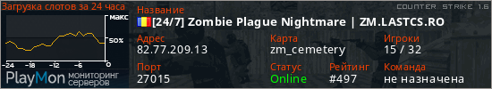[24/7] Zombie Plague Nightmare | ZM.LASTCS.RO представлен в виде сервера кс 1.6. Из всех имеющихся на сайте модификаций игровых серверов, наша система поставила метку Zombie сервера cs. В нашем мониторинге игровых серверов вы так же можете найти быструю навигацию по всем меткам - используйте главную страницу игры Counter Strike 1.6.
