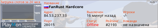 ID: 81871Ссылка: https://playmon.ru/server/84.53.237.33:28015