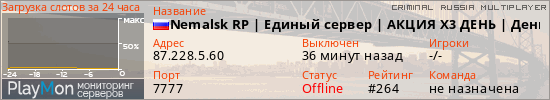 ID: 72281Ссылка: https://playmon.ru/server/87.228.5.60:7777