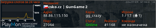 csko.cz | GunGame 2 представлен в виде сервера кс 1.6. Из всех имеющихся на сайте модификаций игровых серверов, наша система поставила метку GunGame сервера cs. В нашем мониторинге игровых серверов вы так же можете найти быструю навигацию по всем меткам - используйте главную страницу игры Counter Strike 1.6.