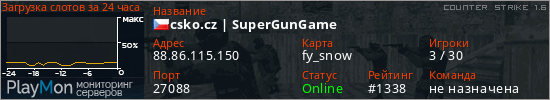 csko.cz | SuperGunGame представлен в виде сервера кс 1.6. Из всех имеющихся на сайте модификаций игровых серверов, наша система поставила метку GunGame сервера cs. В нашем мониторинге игровых серверов вы так же можете найти быструю навигацию по всем меткам - используйте главную страницу игры Counter Strike 1.6.