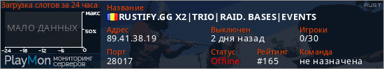 ID: 66101Ссылка: https://playmon.ru/server/89.41.38.19:28017