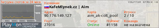KafeMlynek.cz | Aim представлен в виде сервера кс 1.6. Из всех имеющихся на сайте модификаций игровых серверов, наша система поставила метку AIM сервера cs. В нашем мониторинге игровых серверов вы так же можете найти быструю навигацию по всем меткам - используйте главную страницу игры Counter Strike 1.6.