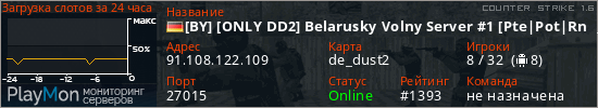 [BY] [ONLY DD2] Belarusky Volny Server #1 [Pte|Pot|Rnd] представлен в виде сервера кс 1.6. Из всех имеющихся на сайте модификаций игровых серверов, вам может понравиться Hide'n'Seek серверы cs. А для быстрой навигации по всем меткам - используйте главную страницу игры Counter Strike 1.6.