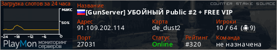 [GunServer] УБОЙНЫЙ Public #2 + FREE VIP представлен в виде сервера ксс. Из всех имеющихся на сайте модификаций игровых серверов, вам может понравиться GunGame серверы css. А для быстрой навигации по всем меткам - используйте главную страницу игры Counter Strike Source.