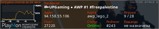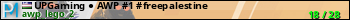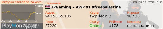 UPGaming ● AWP #1 #freepalestine представлен в виде сервера кс 2. Из всех имеющихся на сайте модификаций игровых серверов, наша система поставила метку AWP сервера cs2. В нашем мониторинге игровых серверов вы так же можете найти быструю навигацию по всем меткам - используйте главную страницу игры Counter Strike 2.
