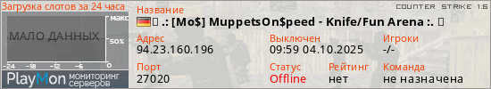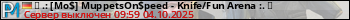 ★ .: [Mo$] MuppetsOn$peed - Knife/Fun Arena :. ★ представлен в виде сервера кс 1.6. Из всех имеющихся на сайте модификаций игровых серверов, вам может понравиться Surf серверы cs. А для быстрой навигации по всем меткам - используйте главную страницу игры Counter Strike 1.6.