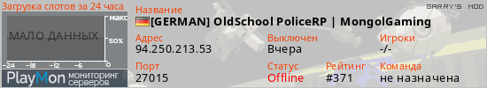 ID: 71735Ссылка: https://playmon.ru/server/94.250.213.53:27015