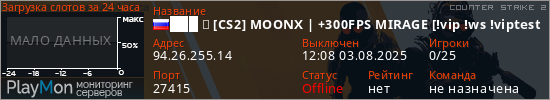 ███ ➥ [CS2] MOONX | +300FPS MIRAGE [!vip !ws !viptest ! представлен в виде сервера кс 2. Из всех имеющихся на сайте модификаций игровых серверов, вам может понравиться DeathMatch серверы cs2. А для быстрой навигации по всем меткам - используйте главную страницу игры Counter Strike 2.