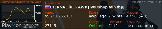 ETERNAL 🍭 AWP [!ws !shop !vip !bp] представлен в виде сервера кс 2. Из всех имеющихся на сайте модификаций игровых серверов, наша система поставила метку AWP сервера cs2. В нашем мониторинге игровых серверов вы так же можете найти быструю навигацию по всем меткам - используйте главную страницу игры Counter Strike 2.