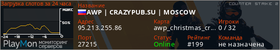 AWP | CRAZYPUB.SU | MOSCOW представлен в виде сервера кс 2. Из всех имеющихся на сайте модификаций игровых серверов, наша система поставила метку AWP сервера cs2. В нашем мониторинге игровых серверов вы так же можете найти быструю навигацию по всем меткам - используйте главную страницу игры Counter Strike 2.
