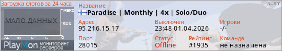 ID: 80889Ссылка: https://playmon.ru/server/95.216.15.17:28015