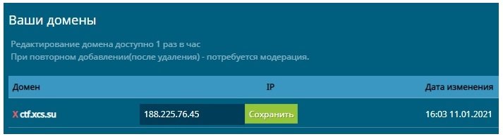 Теперь процесс полностью автоматизирован и после одобрения заявки вы можете менять IP-адрес к которому ведёт домен - 1 раз в час.